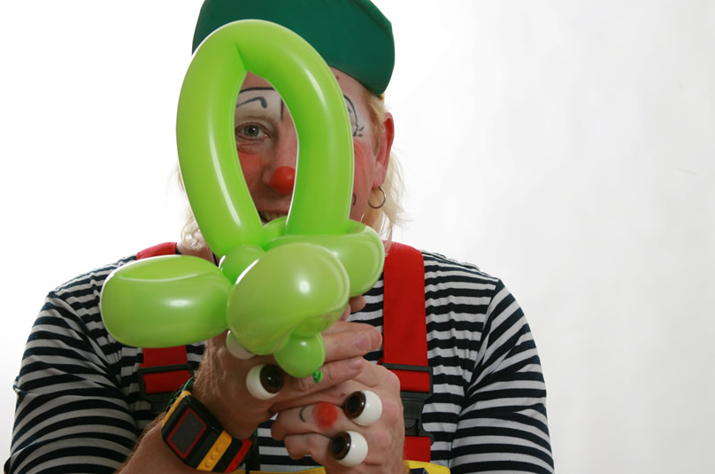 NEEN HOOR, ALS CIRCUSCLOWN VOUW IK GEEN BALLONNEN DIE ER UITZIEN ALS EEN 'RASECHTE ROZE DINOSAURUS MET BUITENBOORDMOTOR', NOCH EEN 'MERCEDES SPRINTSTER MET OVALE BANDEN EN INGEBOUWDE BOORDCOMPUTER'. NEEN, NIKS VAN DAT. IK HOU HET GRAAG CLOWNIENDELIJK (CLOWNS EN VRIENDELIJK IS DAT VOOR MIJ) MET HET SUPERSNEL VOUWEN VAN SUPERBALLONNEN WAARMEE WE SAMEN ECHT KUNNEN SPELEN, BEKIJK DE FOTO’S MAAR EENS...